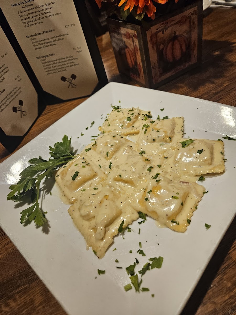 Tri-color cheese tortellini & grilled chicken in vodka sauce.
